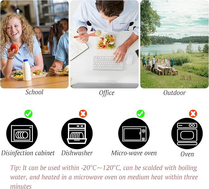 - Quality materials: These travel utensils are made of selected plant fibers. It contains no harmful substances so everyone can use it without worry. It is lighter in weight compared to ceramic metal tableware. Even if you drop it on the floor, it will not break easily.