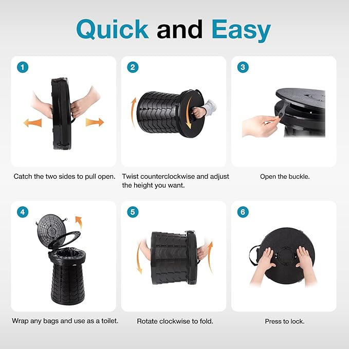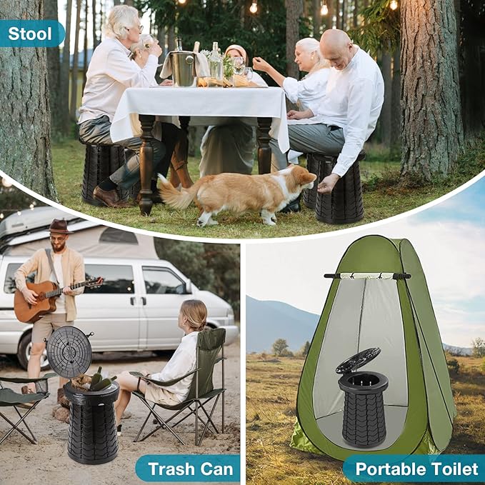 - 【MULTI-FUNCTIONAL】 Functional cover design, makes you free to switch various modes of use, as a camping toilet, a collapsible stool, a storage box,a side table or a trash can. It is not only a perfect portable toilet for camping, hiking, long trips, fishing, boating, traffic jam etc. But also a good portable potty for adults and kids indoor.