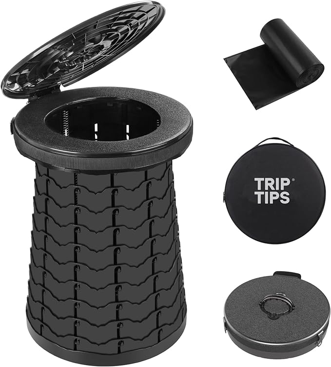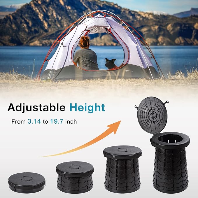 - 【HEIGHT ADJUSTABLE】 Are you looking for a portable toilet that is height adjustable and could be folded down to a small size for easy transport? Here it is! TRIPTIPS retractable portable toilet is designed with innovative fish scale structure, by which you could freely adjust any height you want from 3.14 inches to 19.7 inches within 10 steps. Whether elderly or children, men or women, can always find a comfortable height for themself.