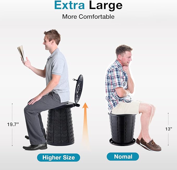 - 【EXTRA LARGE】 As we know, the foldable toilets on the market are generally not high enough for adult men. So we increased the height of this toilet to 19.7inch, which is very suitable even for man use. In addition to this, We widened the seat cover, making you feel more comfortable when sitting on it.