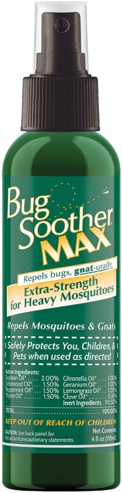 Bug Soother Max - Extra Strength Natural Gnat, Tick, and Mosquito Repellent, 4 fl oz Bug Spray Deterrent - DEET-Free - Safe for Adults & The Environment - Made in USA