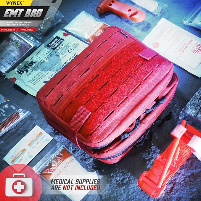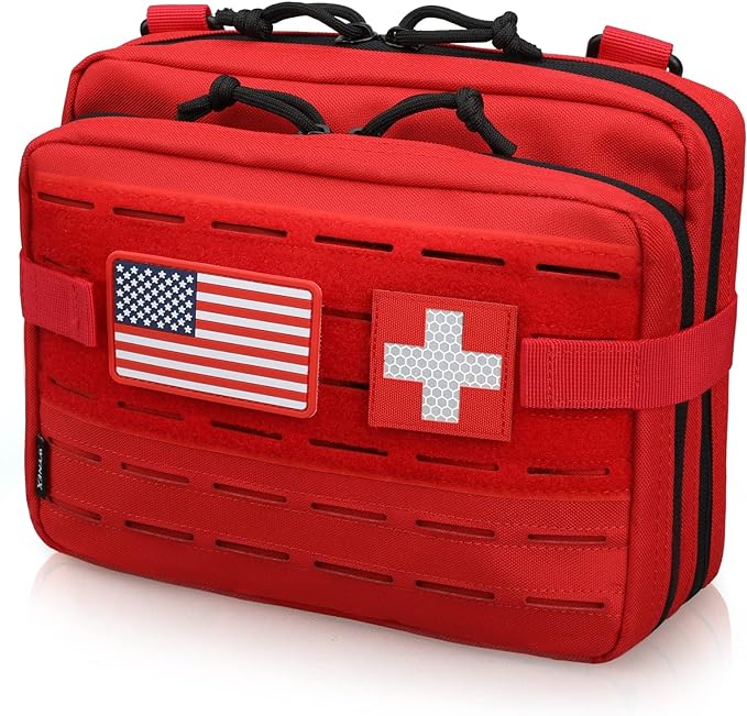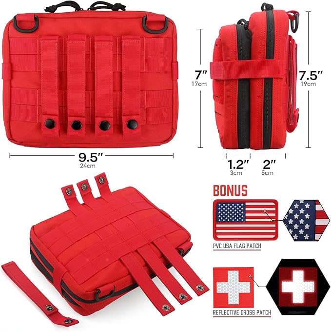 - Premium Nylon & Zipper: IFAK pouch is made of 1000D nylon for sturdily, tear-resistance and water-resistance. Molle EMT pouches has a sturdy and smooth double zip that opens quickly and lays flat for easy access to tools or tactical gear. Thanks to the good closure of the zip, can be kept dry and protected from moisture and sand. Tactical med Pouch will be perfect for your field day or everyday activities. Dimensions: 9.5 " L x 7.5 " H x 3.2 " D