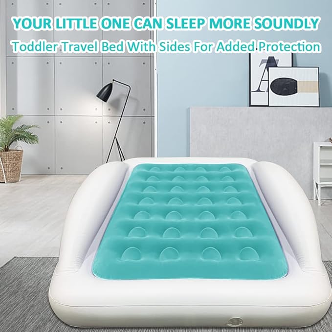- 【Ideal For Your Baby's Travel & Visiting】Hurry to get a travel air mattress that makes your kids feel cozy and right at home! Enjoy peace of mind knowing that your little one won’t roll over or fall off while they sleep! Make your long trips even more fun! Bring your kids, with this toddler travel bed blow-up mattress to visit grandparents!