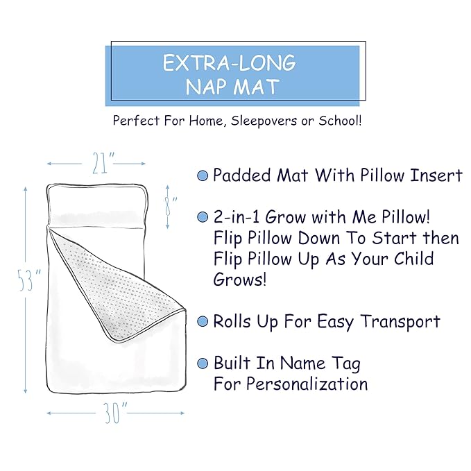 - Designed for Mobility: Roll, secure, and go! With an easy-to-use hook and loop closure, a handy carry handle, and an in-built name tag, it's the perfect kids sleeping mat for daycare and more.