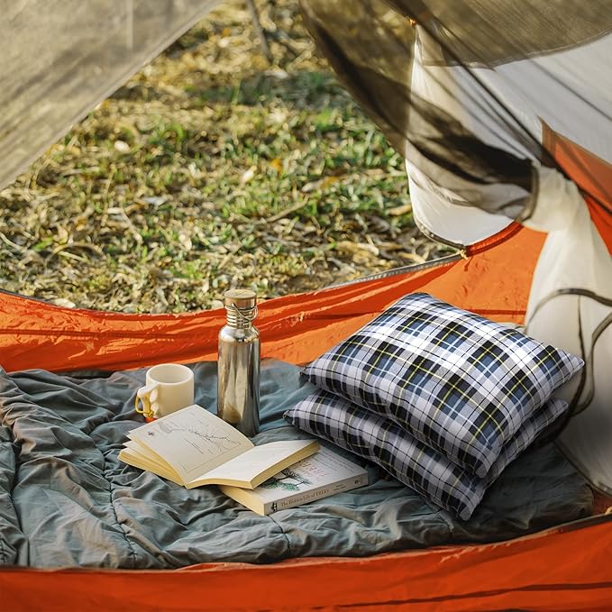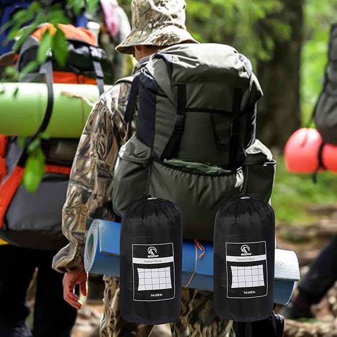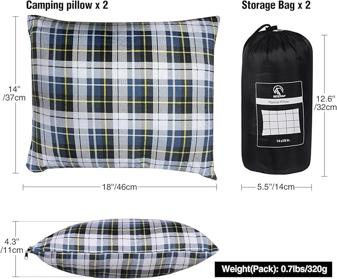 REDCAMP Small Camping Pillow Lightweight and Compressible, 2PCS Flannel Travel Pillow with Removable Pillow Cover