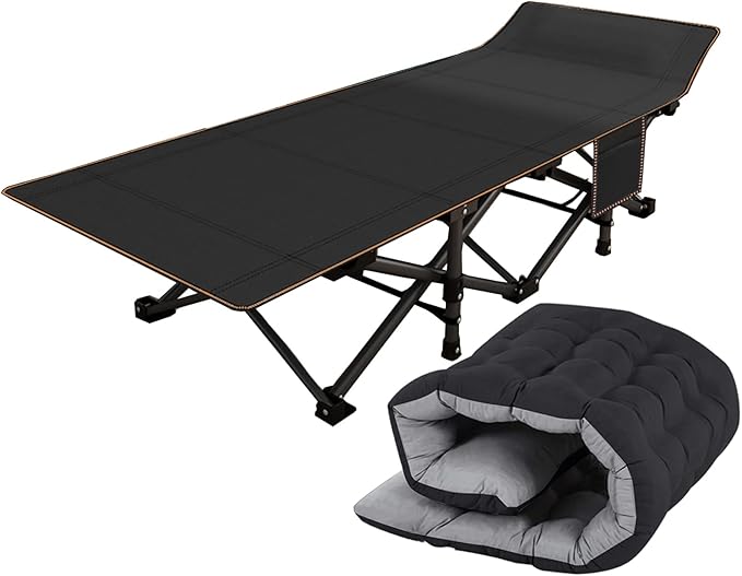 ABORON Folding Camping Cot for Adults, Double Layer 1200D, 500lb Capacity, Heavy Duty Guest Cot with Mat & Carrying Bag for Indoor & Outdoor Use