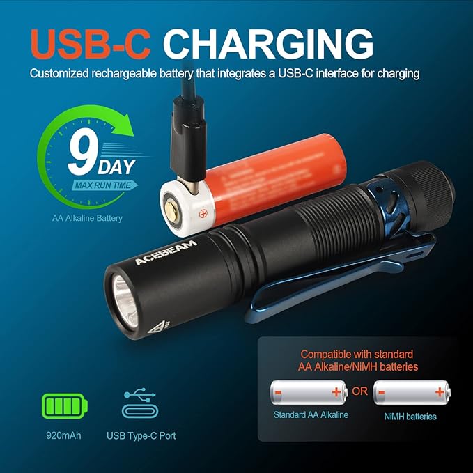 - Rechargeable and AA Flashlight: Coming with one rechargeable battery, also compatible with one standard AA (Ni-MH/Alkaline) battery, its convenient and easy to get, you won't need to worry about no battery use.