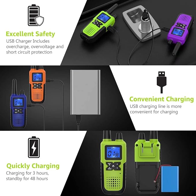 - 【Complete Set for Instant Use】 : Unbox to find everything you need: rugged walkie talkies for all ages, original earpiece and mic sets for private chats, original USB charger for rapid charging, Y cable for simultaneous charging, high-capacity battery for extended communication time, belt clip and adjustable lanyards for ease of carry. Your one-stop communication solution is here, whether for work, play, or anything in between