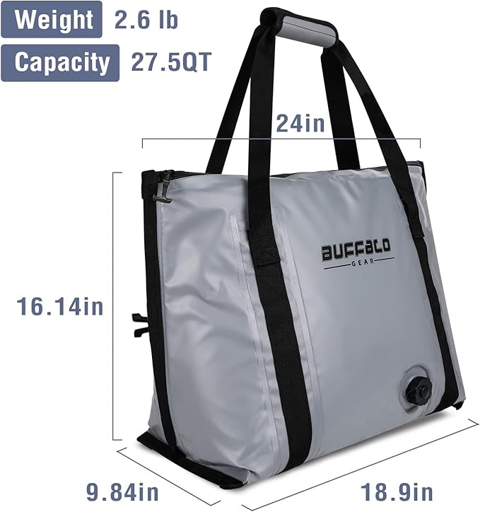 Buffalo Gear Insulated Fish Cooler - 27.5QT 58QT Waterproof Flat Bottom Bag, Leakproof and Fishing Kill Bag