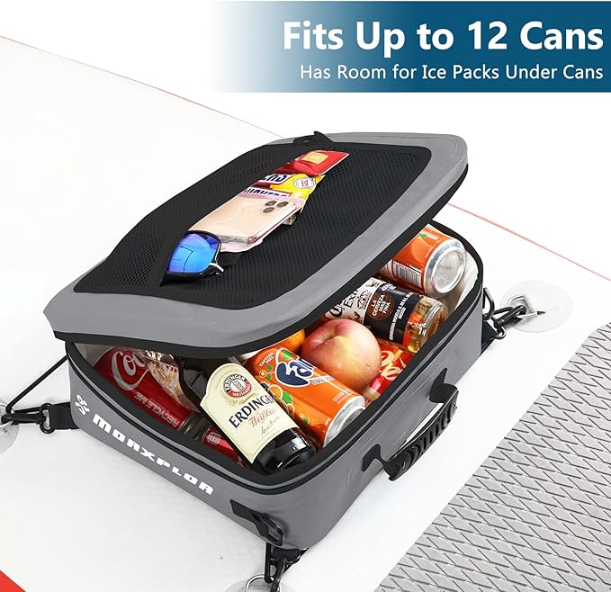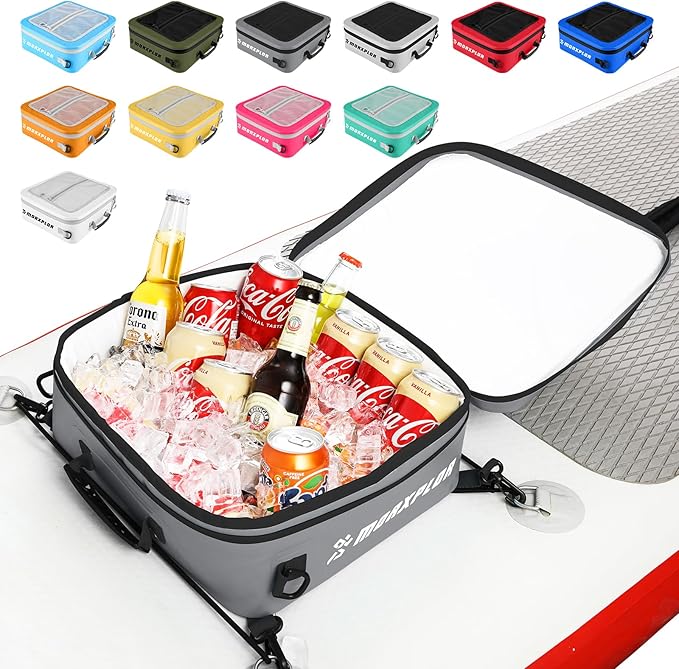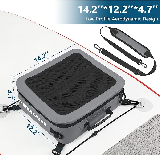- Ideal Paddleboard Accessories Cooler and Deck Bag:MORXPLOR paddleboard deck cooler bag easily fit 12 cans or equivalent amount of food for your day-long excursion.Size:14.6”x13”x4.7”.
