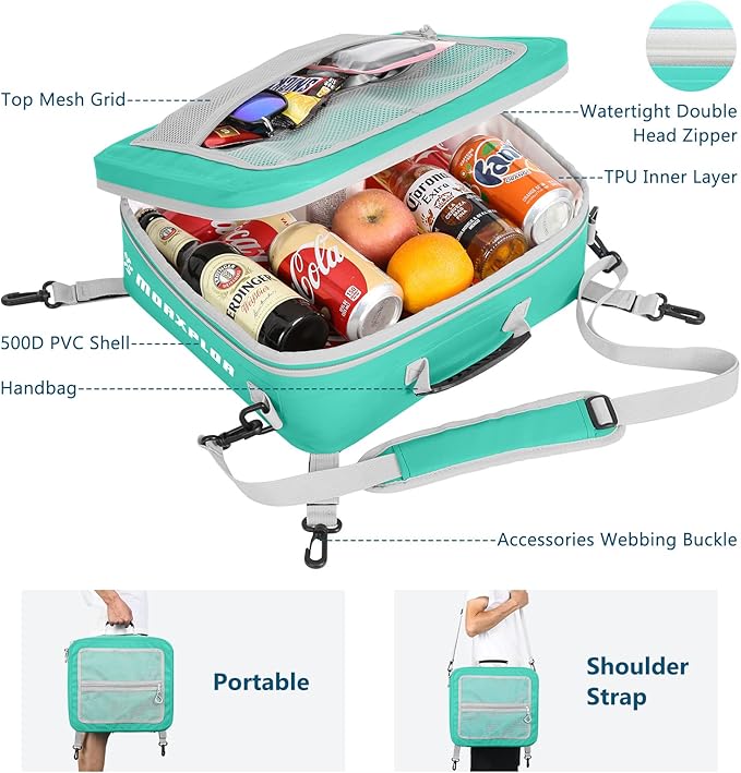 - Paddleboard Cooler Mesh Top Pocket Easy &Reliable to Use:The zipped mesh top keep your items handy and organized.The included hooks allow easy installation to D-rings and bungees.The side handle makes carry the waterproof sup cooler and deck bag like a breeze.