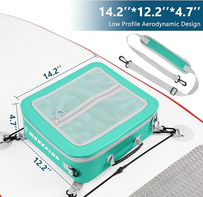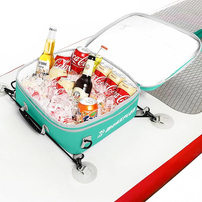 - Ideal Paddleboard Accessories Cooler and Deck Bag:MORXPLOR paddleboard deck cooler bag easily fit 12 cans or equivalent amount of food for your day-long excursion.Size:14.6”x13”x4.7”.