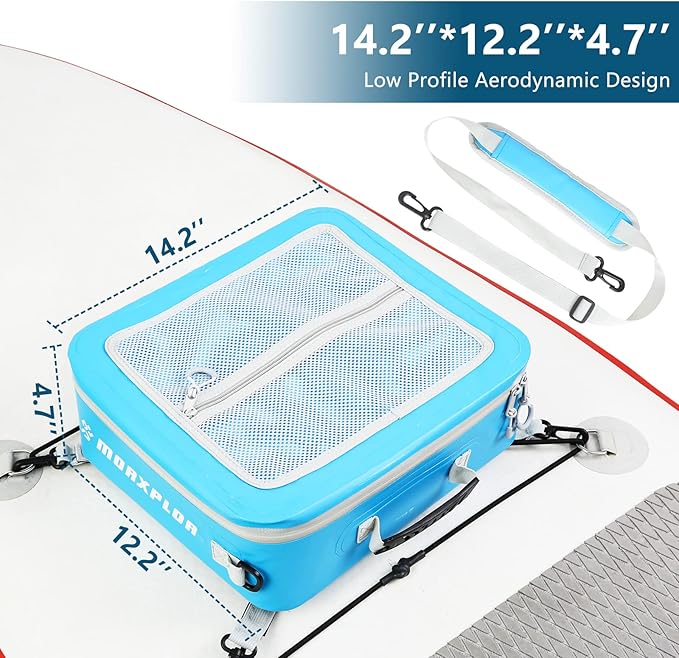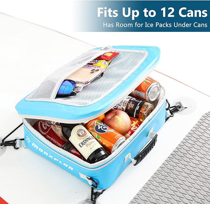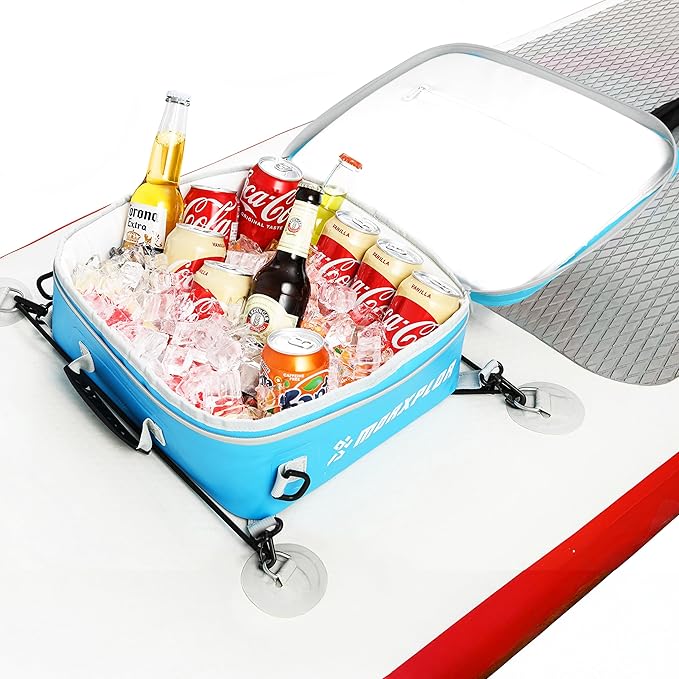 - Ideal Paddleboard Accessories Cooler and Deck Bag:MORXPLOR paddleboard deck cooler bag easily fit 12 cans or equivalent amount of food for your day-long excursion.Size:14.6”x13”x4.7”.