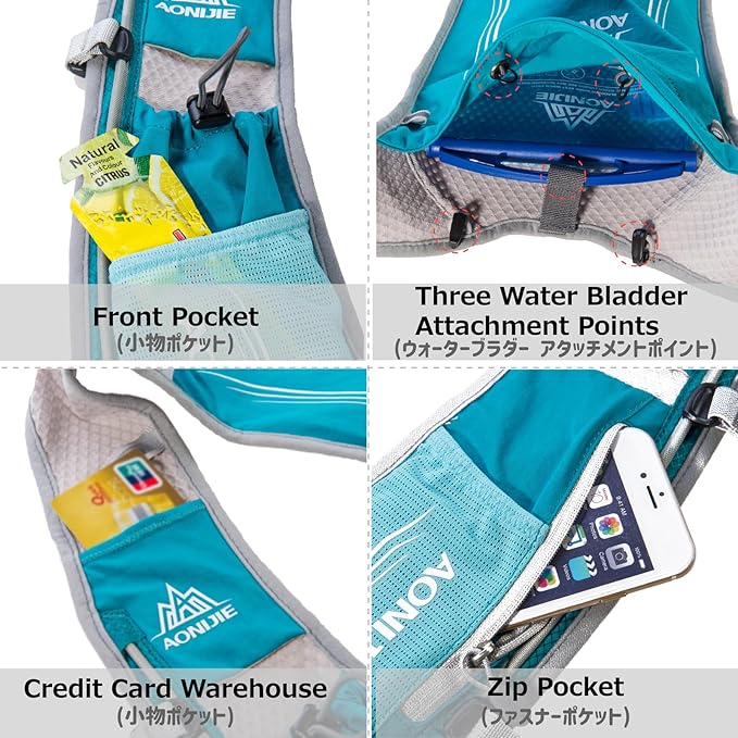- 🏃♀️ MULTI-POCKET DESIGN: Provides you with plenty of space to store your belongings. Multi-pocket design, your water bottle, phone, key, money, food can be easily stored in the front pocket, and hydration bladder or other items can be placed in the back pocket