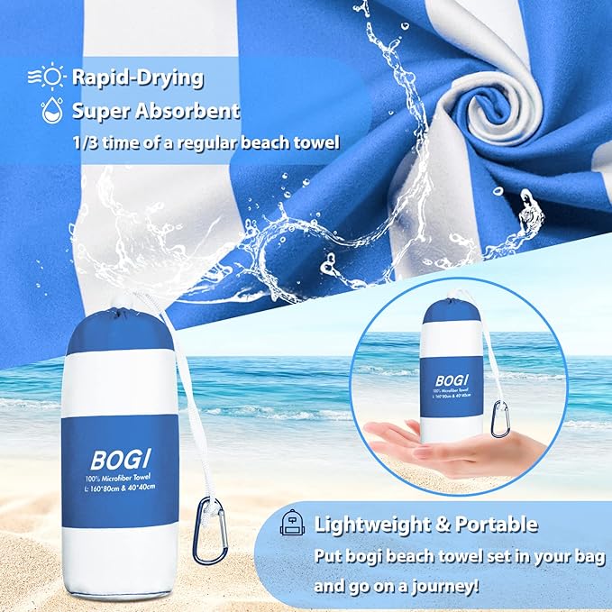 BOGI Microfiber Beach Towel Set,Quick Dry Beach Towel-(Size:L,XL)-Lightweight Absorbent Oversized Travel Towel,Sand Proof Compact Pool Towels for Travel Bath Beach Swim Gym Yoga