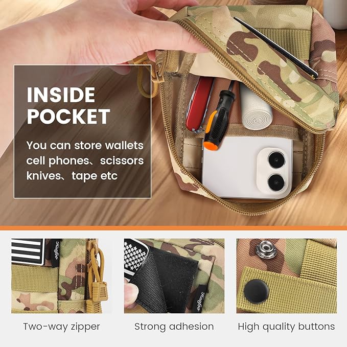 - 【 EXCELLENT STORAGE 】 - The main pocket is with large capacity design to make it easy to store your personal items like cell phone, keychain, small GPS device, medical supplies, outdoor survival tools, tactical pen, digital cameras, while the extra straps can hold carabiner or flashlight easily.