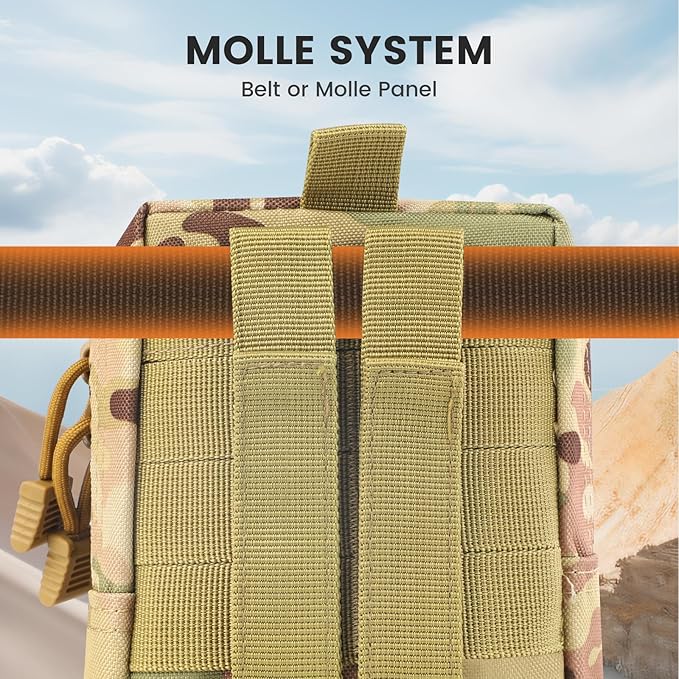 - 【 MOLLE SYSTEM 】- The Tactical EDC Utility Pouches is with MOLLE system design, the back 2 molle straps can be attached to tactical backpack, tactical belt, combat vest or other tactical gears, easy to connect the pouches to other Moller equipment.