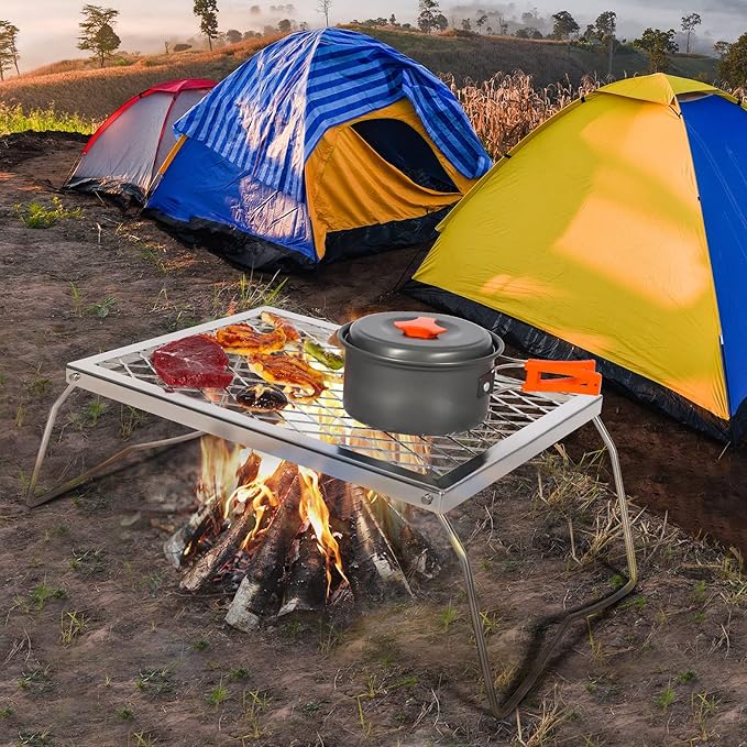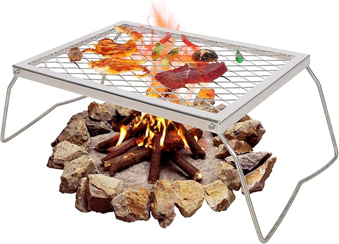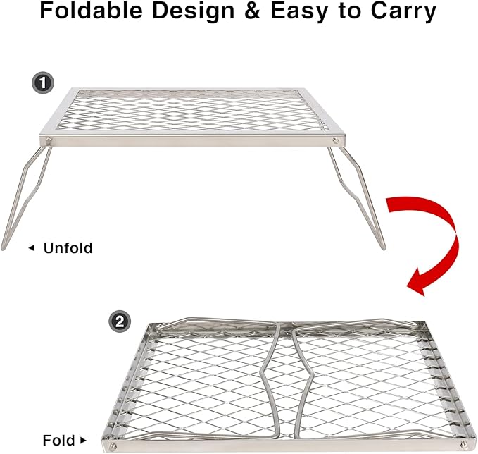 REDCAMP Folding Stainless Campfire Grill Heavy Duty Steel Grate, Portable Camp Fire Cooking Racks for Over Fire Pit