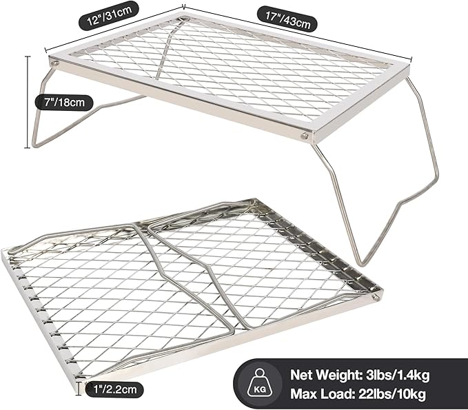 - 【Foldable Design】The folding campfire grill's legs can angle out to keep steady and it can hold up to 22lbs/10kg. You can fold its legs for easy transportation and storage, perfect for travelling.