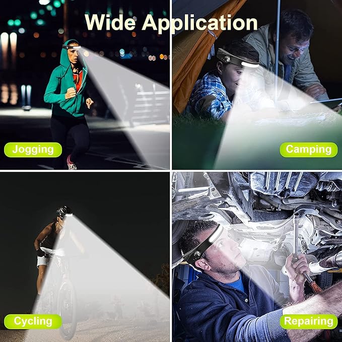 - đđđăSUPER BRIGHT HEADLAMP AND 230° WIDE ANGLE LIGHTINGă: the rechargeable headlamp offers a 230° ultra wide viewing angle to easily illuminate dark environments. The light strip head torch with front COB LED light and the side LED head torch provide a bright viewing area when you are fishing, running. 600 lumens and 230° sensor viewing angle can easily illuminate dark environment.
