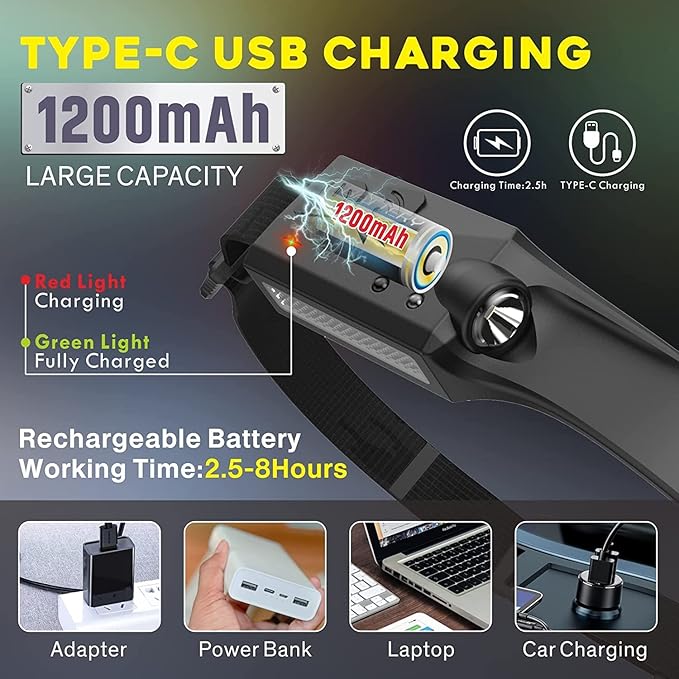 - đđđăRECHARGEABLE JOGGING HEADLAMPă: IPX4 waterproof LED running light rechargeable, built-in battery in 1200 mAh lasts a long time, the running headlamp is charged via the included USB charging cable, which can be connected to any current USB socket. With only 2 hours charging time, the rechargeable jogging lamp provides up to 4 - 8 hours of constant light.