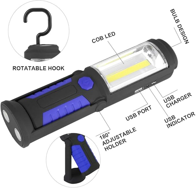 LED Work Light,COB LED Flashlight,Portable Flashlight,with Magnetic Stand for Car Repair, Home, Garage, Emergency and Outdoor Camping (Blue), COB LED Flashlight,LED Work Light,Portable FlashliCOB