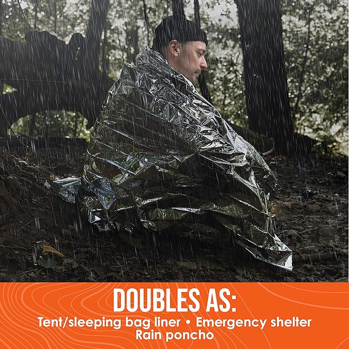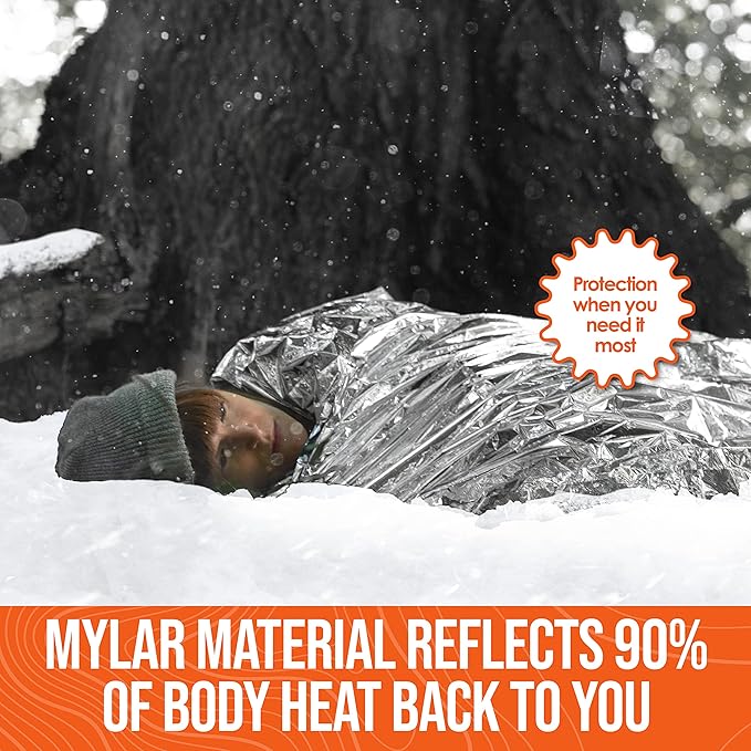 - Portable & Lightweight - Our large emergency blanket is compact which allows you to store it in your camping kit, survival kit, or car emergency kit!