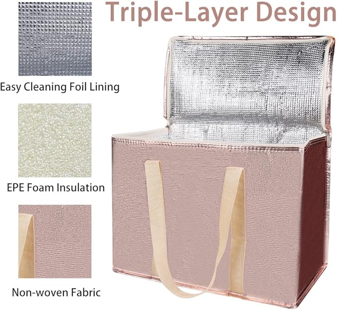 - 【KEEP FOOD WARM】:The reusable storage bags work great for food delivery for Uber Eats. They are insulated tote bag to keep our food nice and cool. Excellent product for delivering hot food! Keeping food cold/frozen during warmer weather. They are also great to use when you travel to family gatherings with pies, pizza or salads. Large food carrying bags, xl thermal bags for grocery carrier