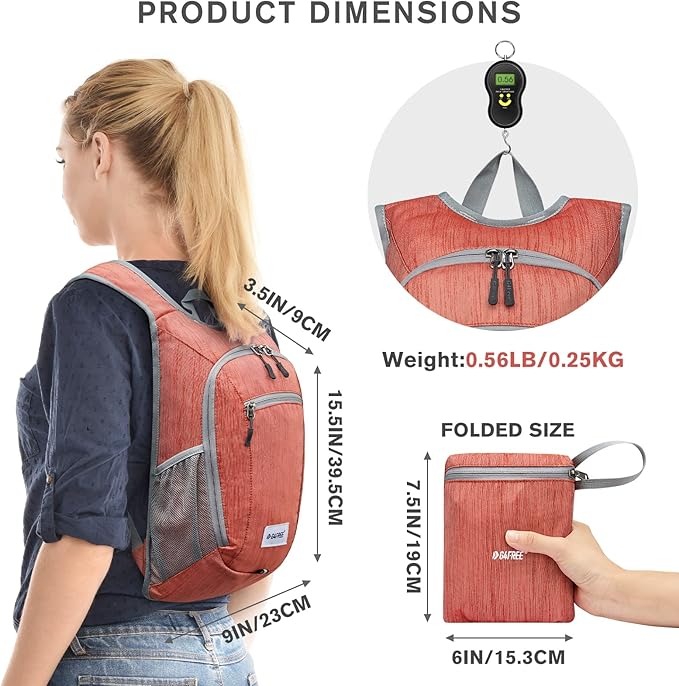 - FOLDABLE: This backpack is easy to fold up into its pocket (Not included extra pouch. Just its own inner pocket to pack with. ) Unfold size: 15.5x9x3.5inches. Folded size only 7.5 x 6inches, easily pack it in your suitcase, backpack, or car and simply unfold from your checked bags and use it as a carry-on for your excess baggage to avoid the overweight charge.