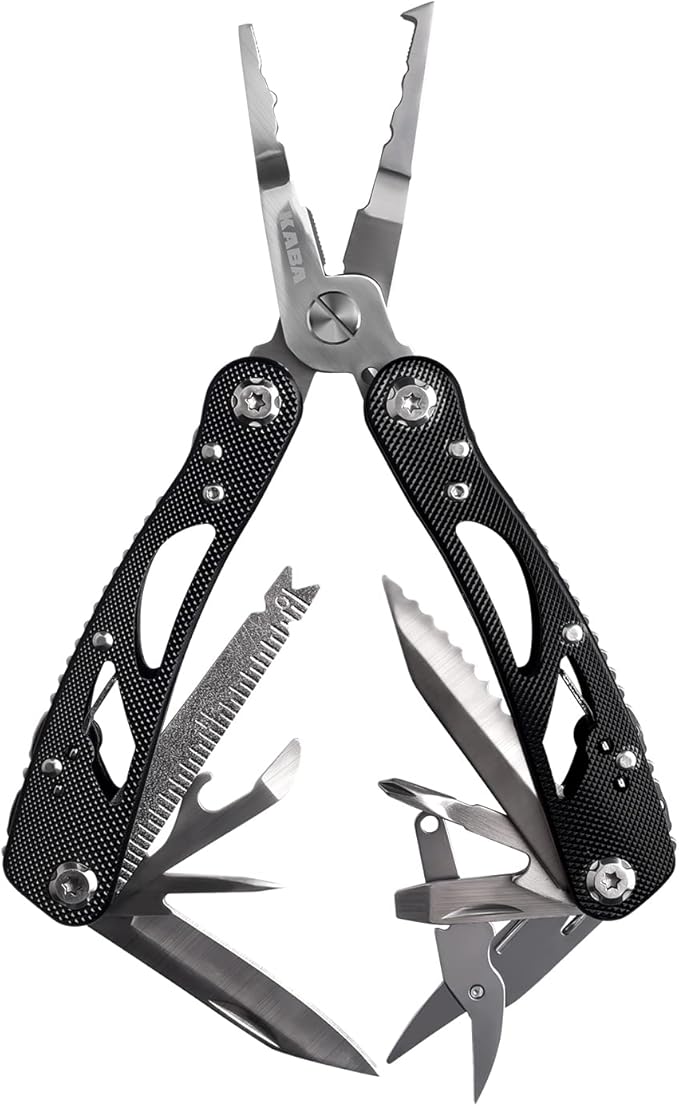 Kaba 12-in-1 Multitool Pliers of Fishing Tools, Professional Stainless Steel Multitool Pliers,Pocket Knife,Bottle Opener,Apply to Survival,Camping, Hunting and Hiking DIY Gifts for Men
