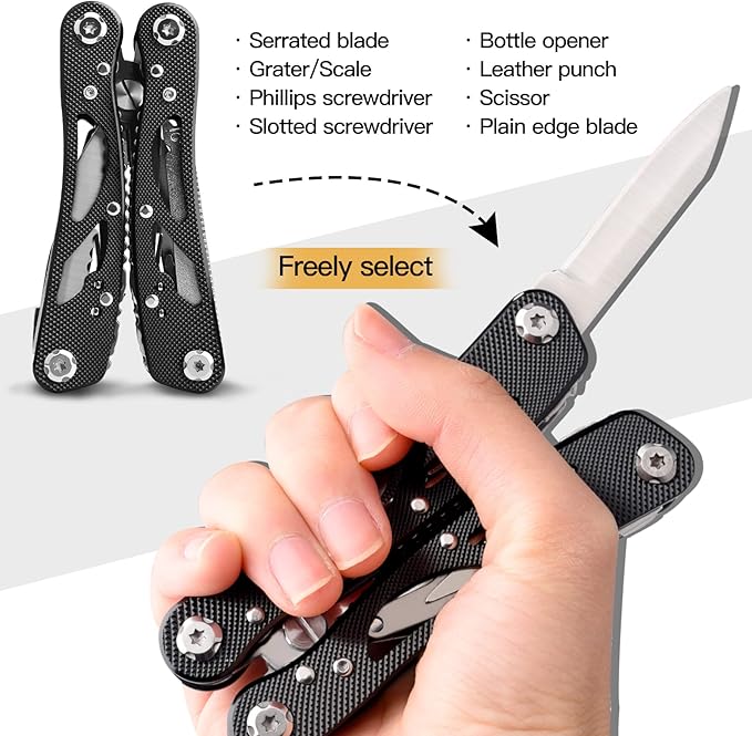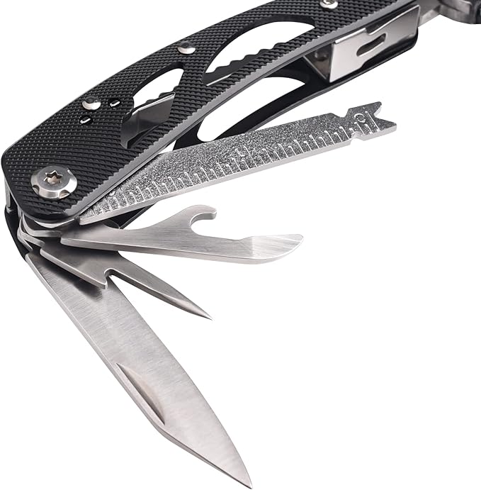- Comfortable Handle: Aluminum alloy non-slip handle,with ergonomic design, comfortable and easy to grip. Easy to operate this Multitool Pliers with just one hand.