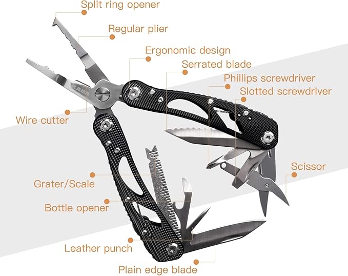 - Ideal Gift: Kaba Multi Function Pliers is ideal as a gift for outdoor activities like hunter, tradesmen,anglers, fishing/camping/hunting enthusiasts.