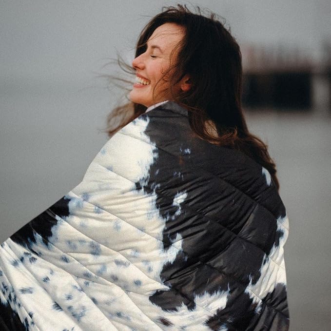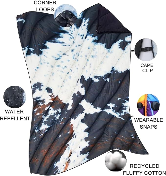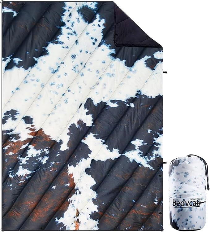 Camping Blanket, Puffy Waterproof Travel Blanket, Warm Cozy Picnic Blanket, for Outdoors, Travel, and Mountain.(Cow, 78" x 56")