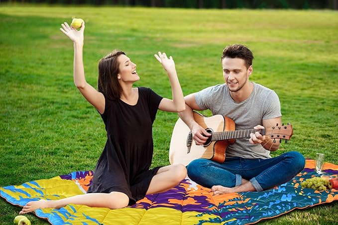 - Waterproof- The outdoor blanket has a DWR coating, nice for repelling dirt, sand, and spilled drinks, and is more durable and protects your blanket from the rain and snow. Stains can be easily wiped off. allowing you to lay it on dirt, grass, or sand without worry.