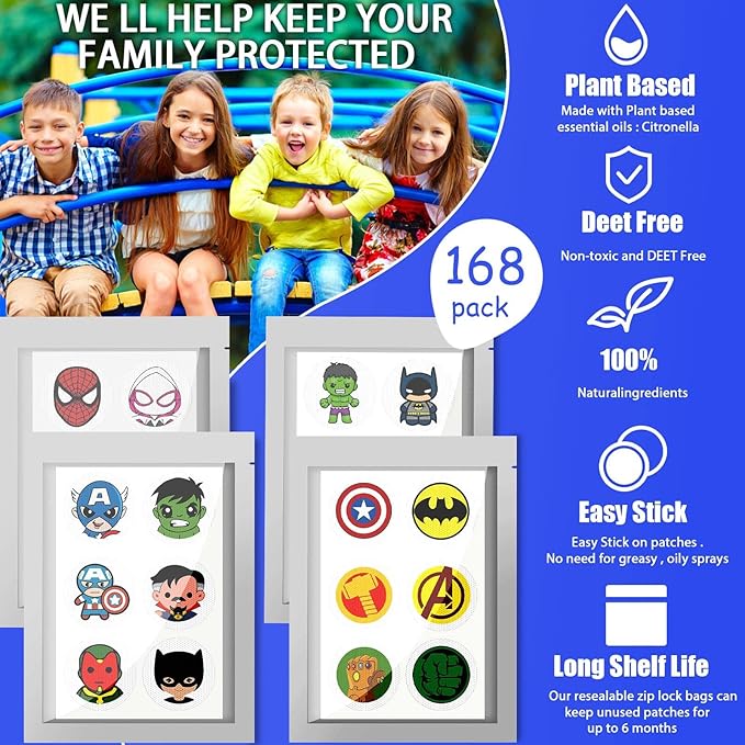 168Pack Mosquito Repellent Patches for Kids, Natural Citronella Stickers for Adult-DEET Free