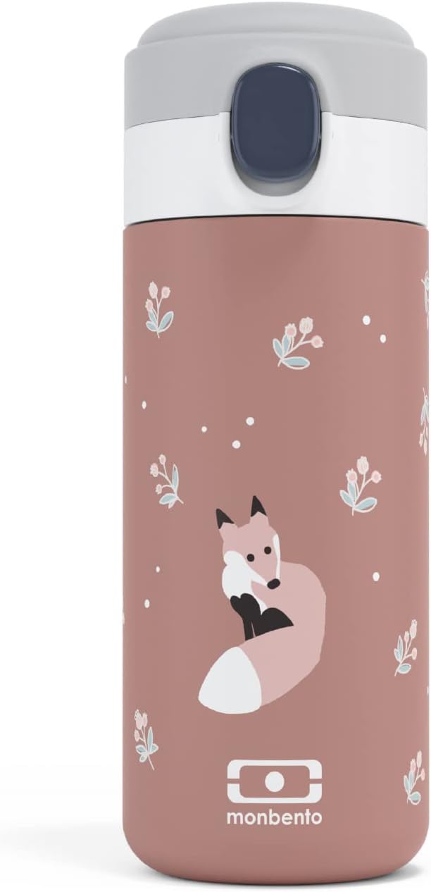 MONBENTO - Insulated Water Bottle MB Pop cinnamon Fox - 11 floz/360ml Leakproof Metal Water Bottle - Keeps Drinks Hot/Cold - Stainless Steel Bottle for Kids & Adult - Sports Cap - BPA Free - Fox