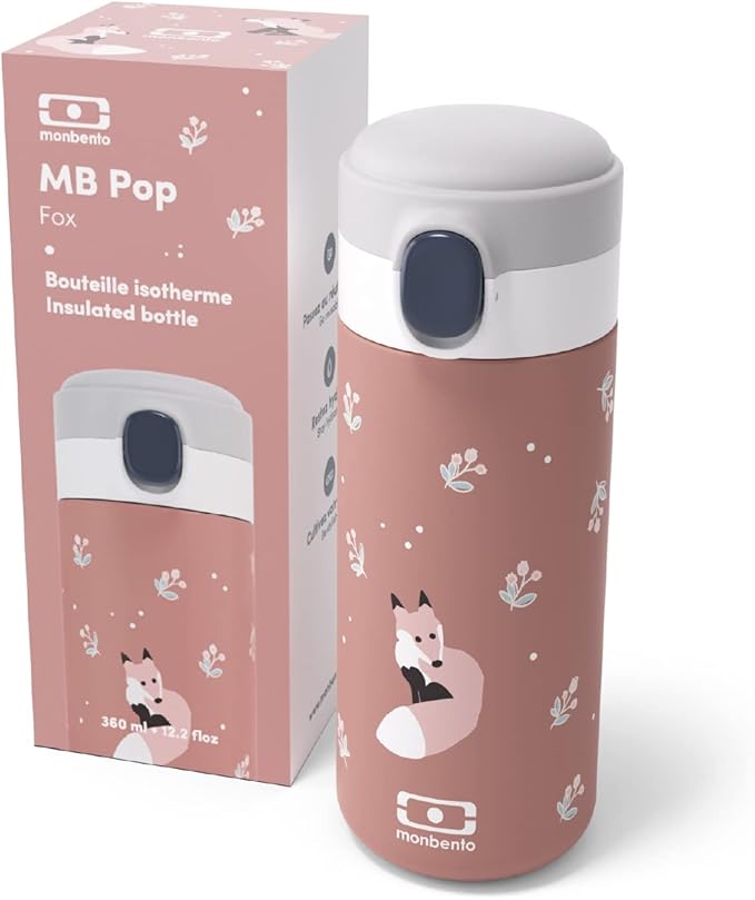 - CONVENIENT: the MB Pop cinnamon Fox stainless steel insulated water bottle has a compact design that easily fits into any bag and schoolbag. It holds 360 ml and is ideal for the kids' everyday drinks. Its sport lid can be opened with just one hand and the drinking spout makes it easy to enjoy drinks anywhere, even with little hands!