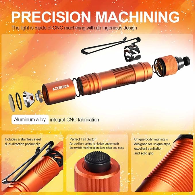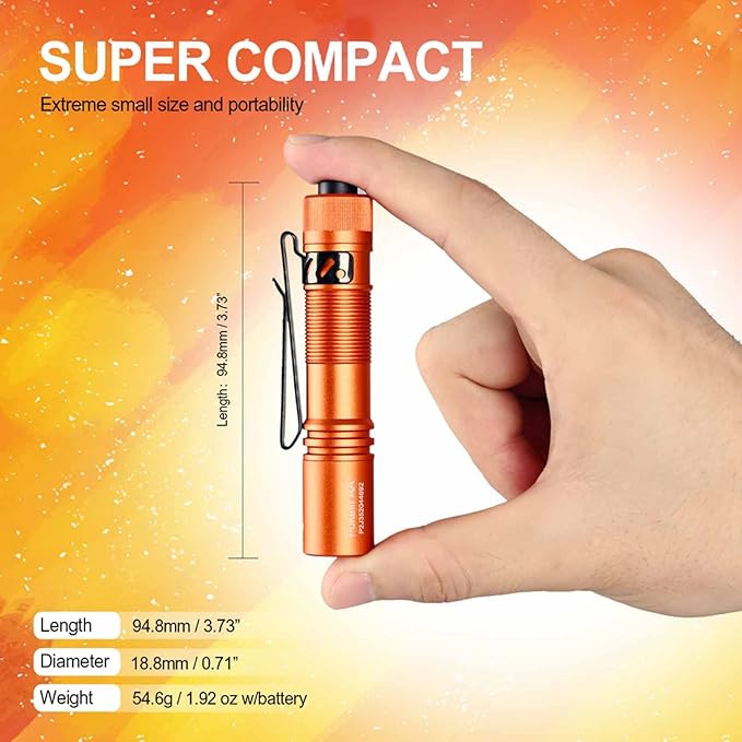 - Sturdy Flashlight: The edc flashlight adopted unique craftsmanship, made of hard anodizing aircraft grade 7075 aluminum alloy, its IP68 water resistance and 1.5 meters impact resistance make the small flashlight endure rough handling and harsh weather.