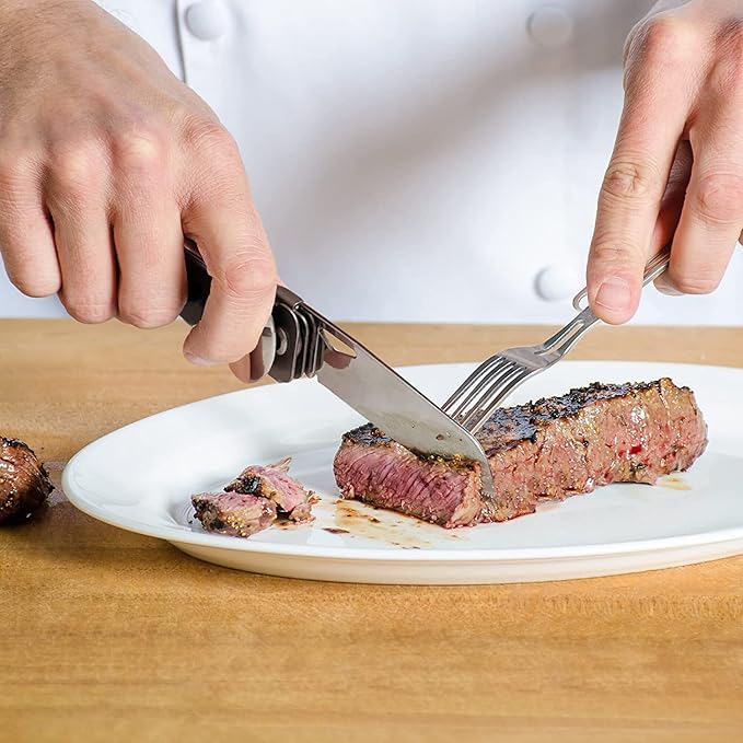 - ✔5-in-1 Folding Multifunctional Cutlery: Contains knife, fork, spoon, wine corkscrew and can opener corkscrew. Outdoor camping portable multi-function cutlery set can save space and it’s great to bring for camping, travel, office, college school, car, backpacking trip, picnic, hiking and more.