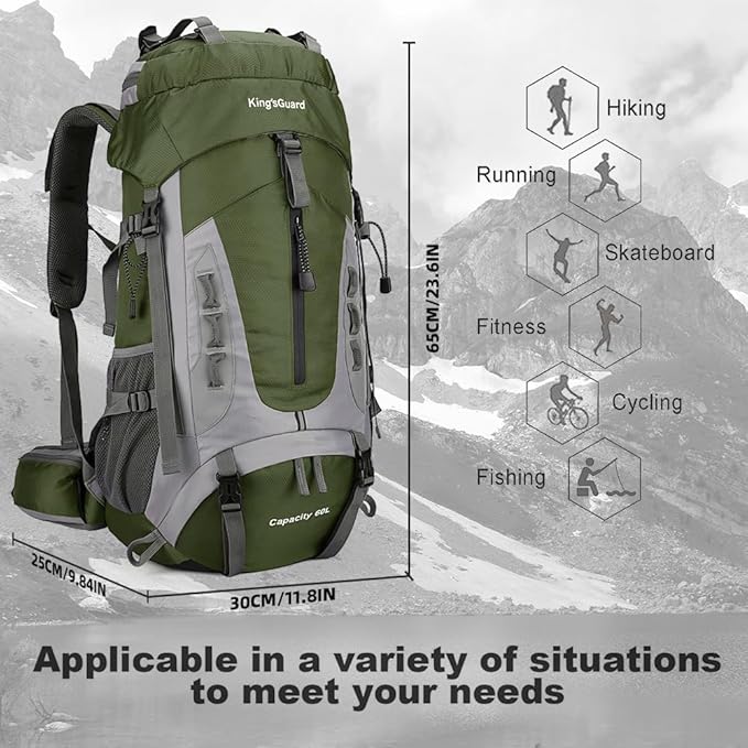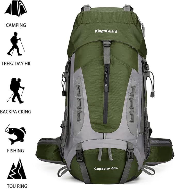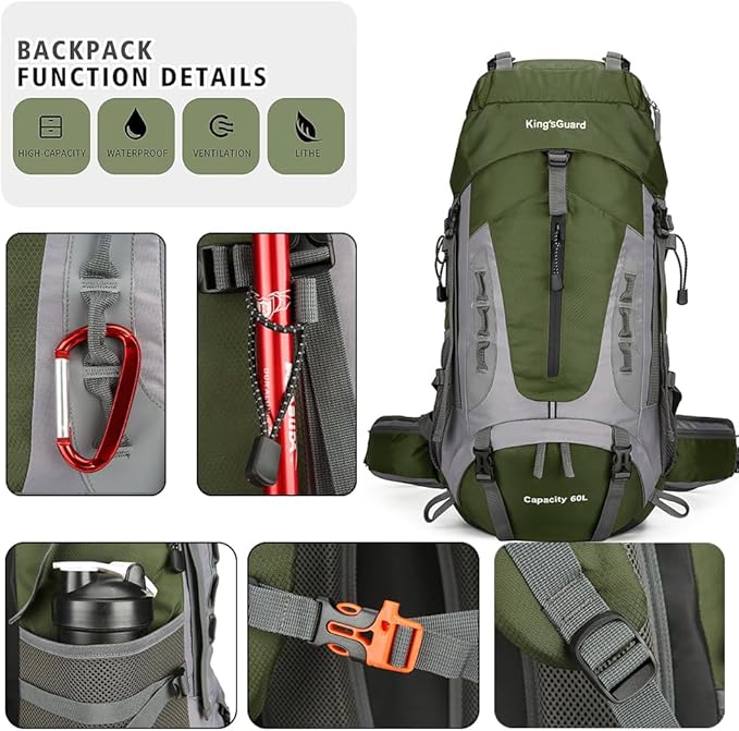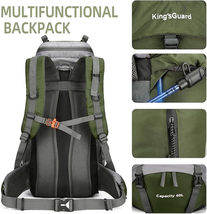 King'sGuard 60L Hiking Backpack Men Women Camping Backpack Waterproof Backpacking Mountaineering Climbing Daypack with Rain Cover (Army Green)