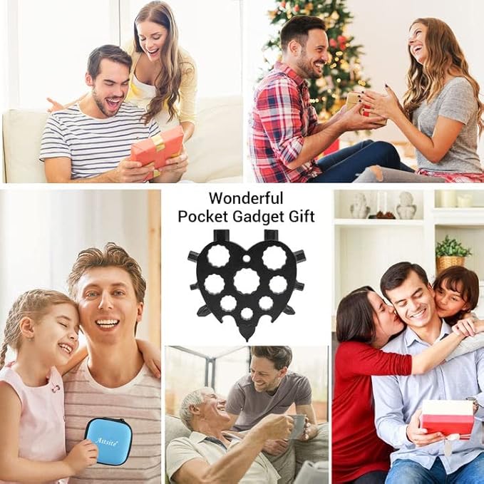 Aitsite Snowflake Multitool, Christmas Gifts for Men, 20 in 1 Snowflake Tools for Dad, Him, Husband, Boyfriend, Grandpa(Heart Black)