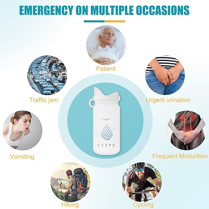 - Wide Application: disposable urinal bag is suitable for vomiting, traffic jams, urgent urination, hiking, cycling, Frequent Micturition, and more emergency on multiple occasions.Great for babies, pregnant women, or patients who need it.