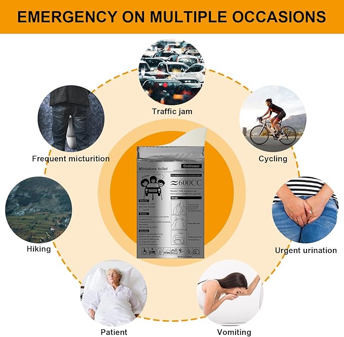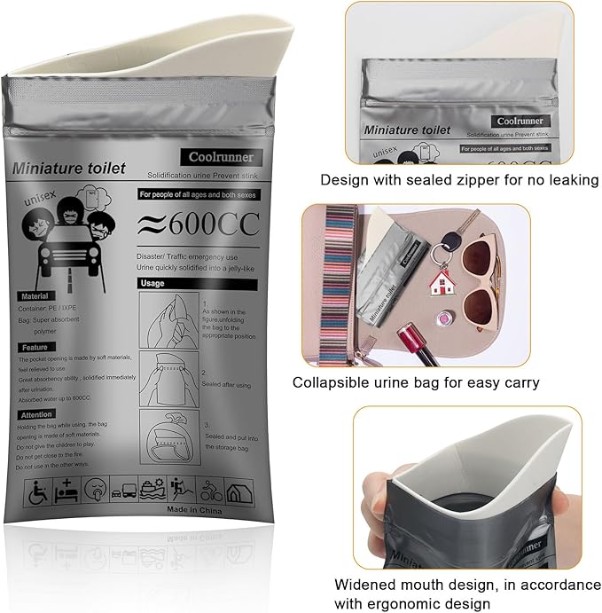 - High capacity -Emergency Portable Urine Bag capacity is about 600 ml. The urine can be absorbed the liquid into gel within 60 seconds