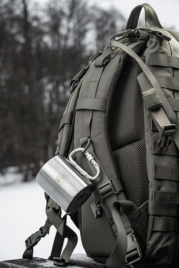 - Multipurpose Design - The M-Tac carabiner handle mug is perfect for military and tactical use by police, fire & rescue professionals. Ideal for camping, hiking, fishing, hunting, backpacking, traveling, climbing, RV, at home, in the office, during walks, trips, and other outdoor activities.