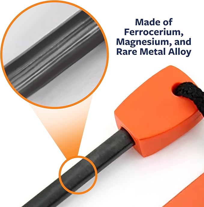 - Durable Ferrocerium Rods - This ultra-durable fire steel rod fire starter is a sturdy tool that will ignite a shower of sparks, lighting a fire instantly, and ensuring you're always prepared for the unexpected.