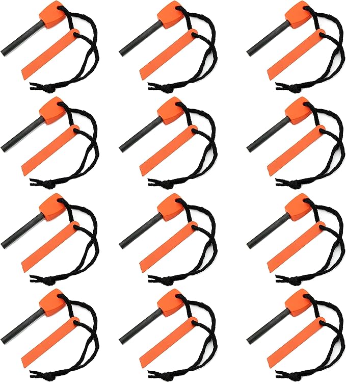 Survival - Mini Alloy Ferrocerium Flint Fire Starter, Thick Waterproof Fire Steel Magnesium Camping Tool for Survival Kits, Hiking, Backpacking, and Emergency Situations - 12 Pack