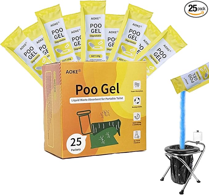 AOKE Portable Toilet Absorbent Gel Powder - 25 Pack Poo Deodorizing Treatment for Outdoor Camping and Hiking