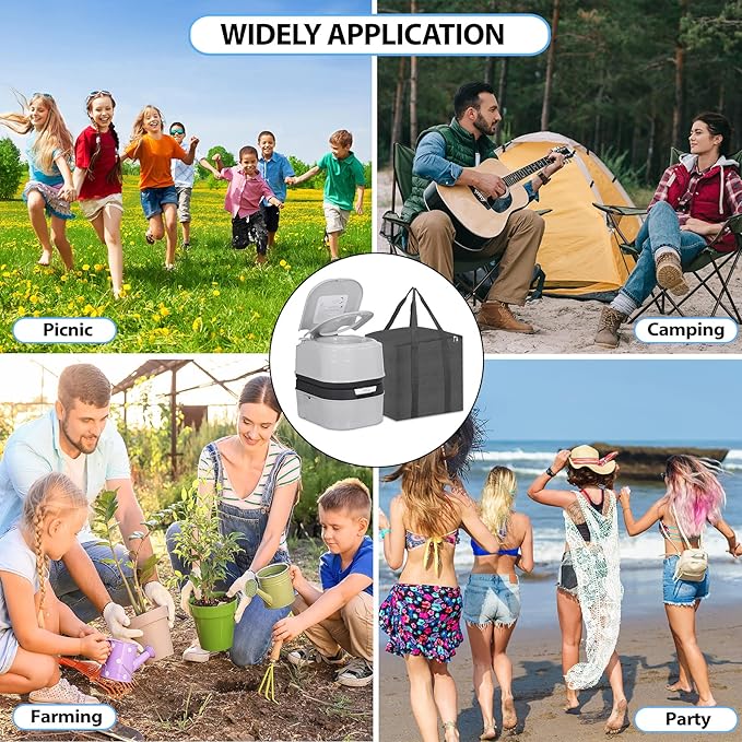 - PORTABLE & CONVENIENT - No need to have a emergency runs during your outdoor travel, picnic, party and gathering; The toilet is designed with a handle, which is convenient to carry, and is equipped with a packaging bag. It can be assembled or disassembled anytime and anywhere, and can be put in your car; You can take this portable toilet to the any corner of the world and will not feel cumbersome at all.