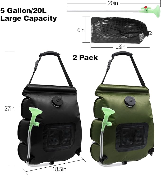 - ☀️【Large Water Capacity】You will get 2 pack upgraded shower bag for camping with a large water capacity of 5 gallons/20L, enough for about 3 showers. The water flow is fine and gentle, bringing you a better shower experience!