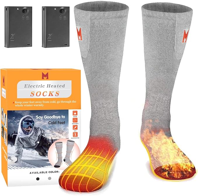 - 【Necessary for Winter】: With the electric heating socks, you can enjoy your fishing, camping, snowboarding, hunting, hiking, skiing, snowboard, and outdoor work, etc. The winter battery socks is a considerate gift for your parents, friends and family. One size for most people.